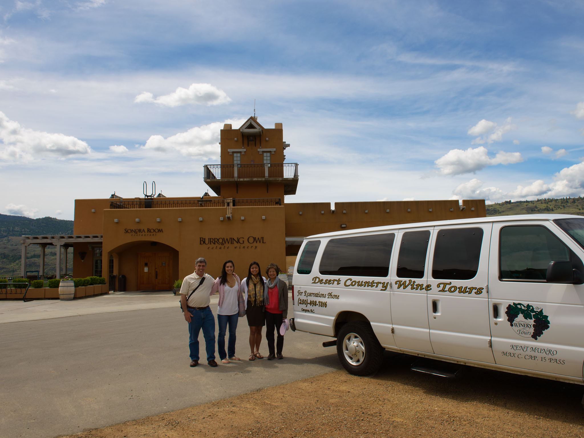 It's your day, so let me guide you in comfort and discover the lush vineyards of Canada's only Pocket Desert. I'll pick you up at the location of your choice, along the way, I'll share stories about the Okanagan award winning wines and we'll meet the people who make the wines. Take a look at how much fun we have on our tours.